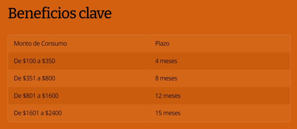 El plazo dependerá del monto de consumo, a continuación se detalla:
